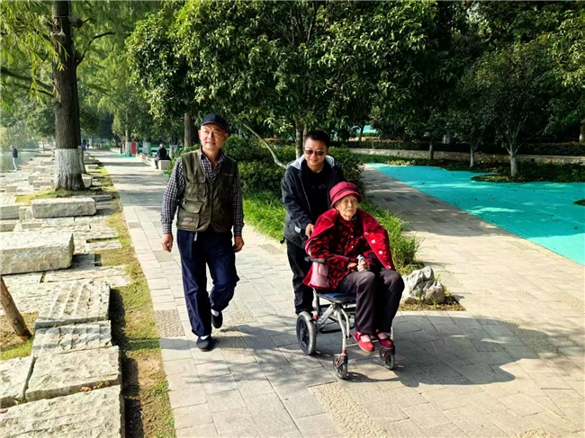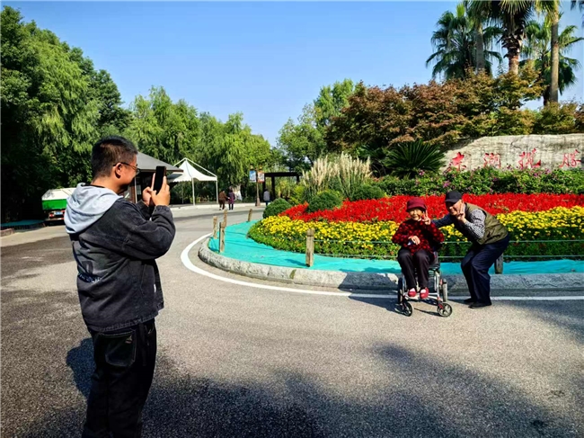 银发族晚年生活不设限:90后孙子带百岁奶奶登黄鹤楼过重阳