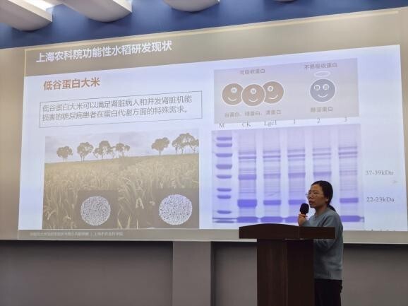 上海市农业科学院专家团队围绕功能性大米种源研发、功能成分、加工技术作专题报告。重点分享富硒、高膳食纤维、低GI等特色水稻品种培育进展,详解活性多糖、功能性氨基酸等核心营养成分的作用机理,同时针对规模化种植、功能成分保留、口感优化等关键技术与现存瓶颈展开说明,为临床应用与产业转化筑牢科技根基。