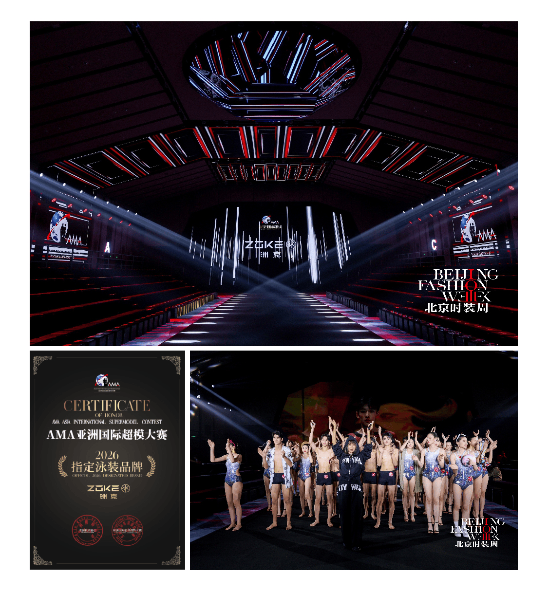 3月17日至23日,2026北京时装周正在北京精彩上演。昨晚20:00,北京正大中心的T台化作一片流动的时尚水域——当最后一位模特身着ZOKE洲克泳装定格于聚光灯下,掌声与快门声交织,洲克与AMA亚洲国际超模大赛的首次携手圆满落幕。